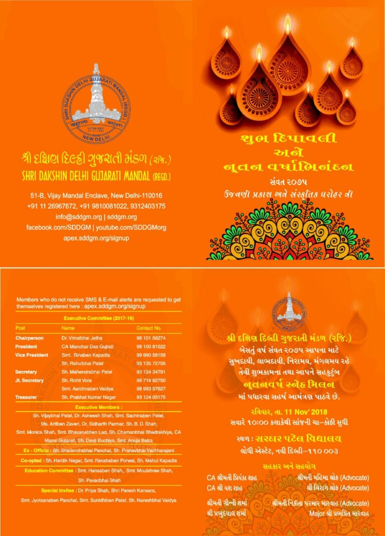 Shree Delhi Gujarati Brahm Samaj (R) and Shree Dakshin Delhi Gujarati Mandal (R), with support of Global Gujarati Group and …